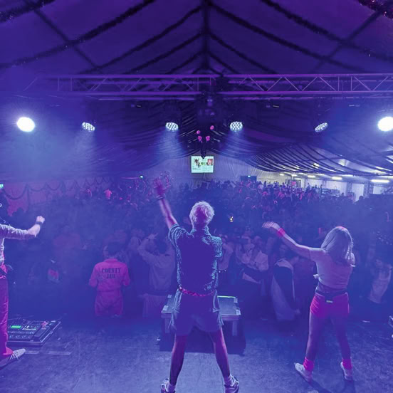 Das moderne, bandeigene Equipment kann bis zu 8000 Personen beschallen und eine Umfangreiche Licht und Videotechnik runden das überdurchschnittliche Partyerlebnis ab.
